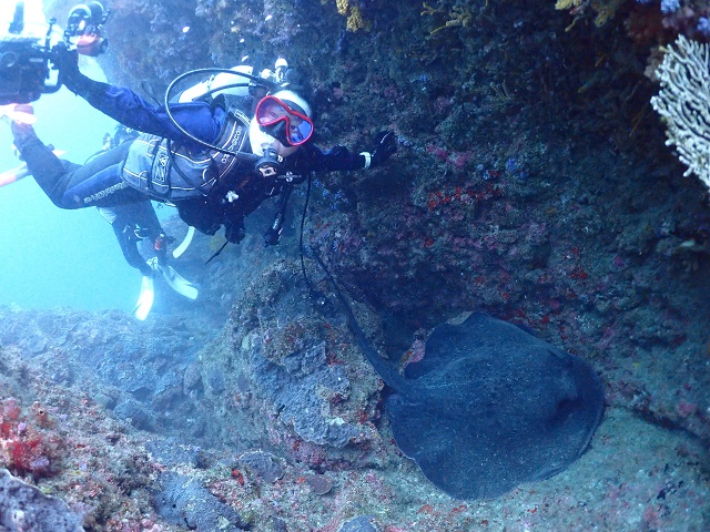 | 自粛が明けて、初の串本ツアー開催です! 梅雨の晴れ間となり、過ごしやすい週末になりました! 海の中も、水温があがってきて、快適&生物たちもどんどん活性化していますよ(^-^) まずはグラスワールドで肩慣らしダイブ! 自粛以前からいてくれるマツカサウオは随分と大きくなりました! イトヒキベラやキンギョハナダイのオスたちは、婚姻色でメスにアピールを始めていましたよ! テンジクダイ系の口内保育も始まっていました! ![]() 2本目は、大好きな吉右衛門~♪ シンデレラ城では、巨大なマダラエイの「マダエモン」くんが出迎えてくれました! ![]() この日のラストは住崎! アザハタの根には、ベニカエルアンコウのちびや、オオモンカエルアンコウのお子様もいて、 カエルアンコウ好きにはたまらない場所です! ![]() 日曜日は、東風で少し涼しく、過ごしやすい気温でした! 久々の備前では、キビナゴの大群に遭遇~♪ メジナの群れも多いです! 2本目は、吉右衛門で、アイドル達にご挨拶! タツノイトコに、カグヤヒメウミウシ、クマドリカエルアンコウと、相変わらず鉄板のシンデレラ城です! ![]() ラストは、住崎の浅場でまったりのんびりです! 真っ黒なオオモンカエルアンコウのお子様が大アクビ~\(^-^)/ ![]() アザハタの根のキンメモドキは一旦激減してしまいましたが、 近くのメジナの大群や、小アジの群れなど、魚影は濃いですよ! だんだん産卵シーズンも本格化してきて、 ちびっこシーズンも近づいている感じがします(^_-)-☆ ぜひ自粛で我慢していた皆様、そろそろ海へご出動してくださいね~!! ご参加いただきました皆様、ご一緒しました皆様、有難うございました! ![]() |