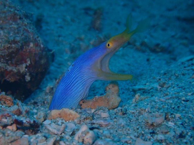 ![]() 少し深いところでハナヒゲウツボのお子様とも遭遇! ここは水温めっちゃ冷たかった〜っ(>_<) |