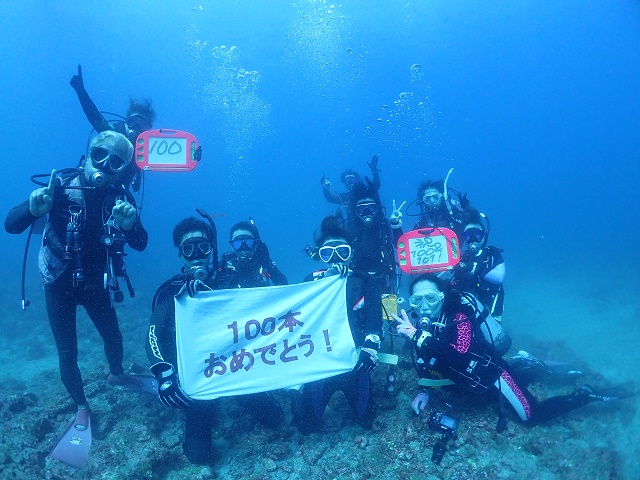 ![]() 8月最後の週末は、お天気にも恵まれ、海も穏やか♪ 絶好のダイビング日和となりました〜! そんな中、100本記念のお祝いもありましたよ〜(^-^) お二人とも、おめでとうございます! |