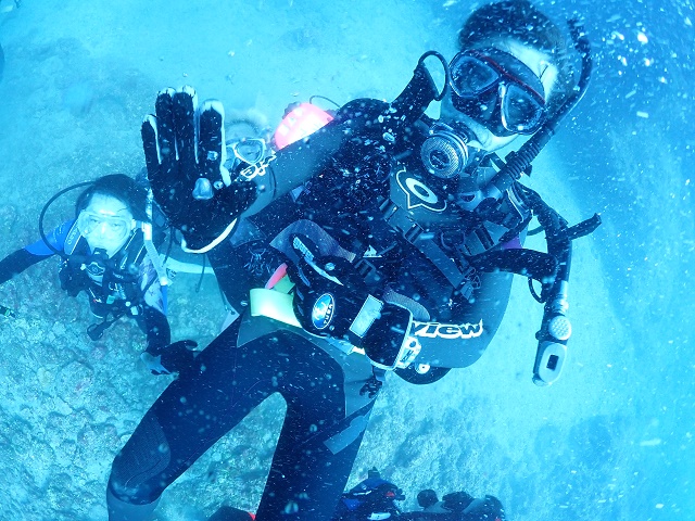 ![]() 青い青い海で記念ダイブ!最高のコンディションでしたね(^_-)-☆ |