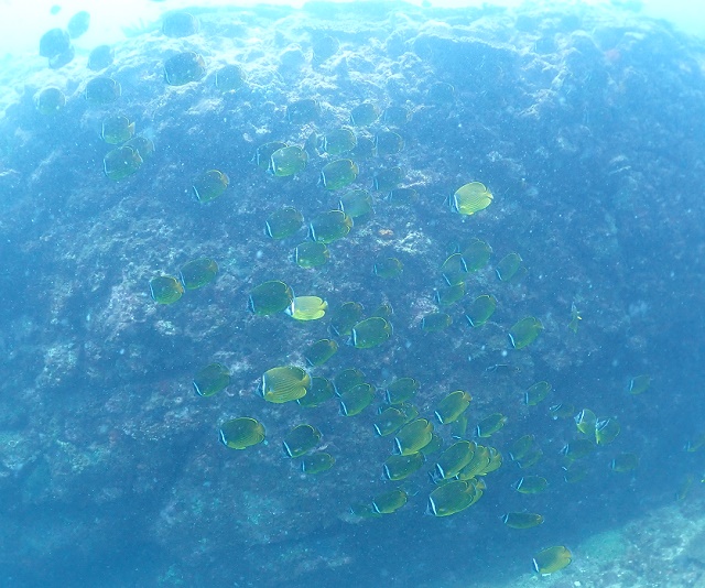 ![]() イスズミ礁の砂地では、カミソリウオのペアが放浪中! そのうち抱卵するのかな? |