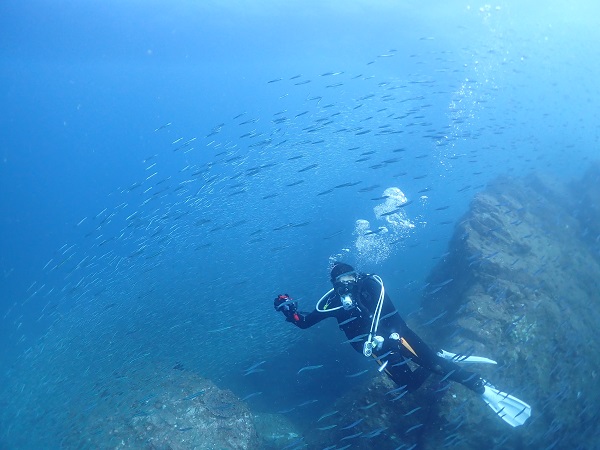 ![]() 場所によっては、キビナゴの大群もまだまだいましたよ〜! ずっと見ていたくなるショータイムです\(^-^)/ |