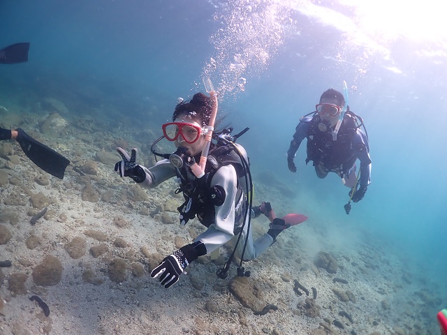 ![]() お申し込みからなんと7年越しになりましたが、 念願のダイバーデビューを飾られたお二人です(^-^) |