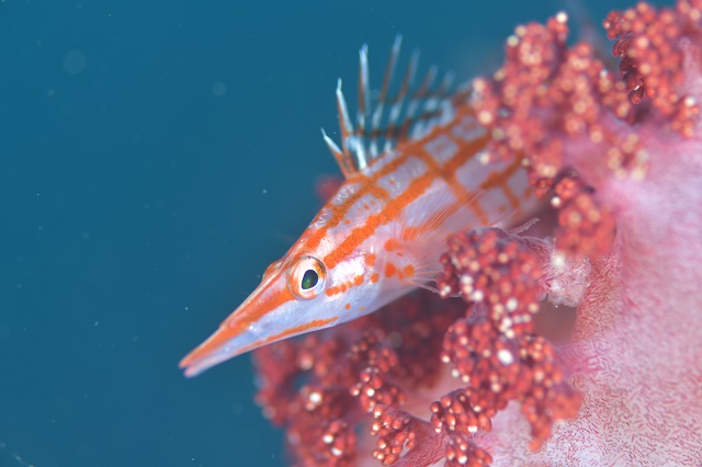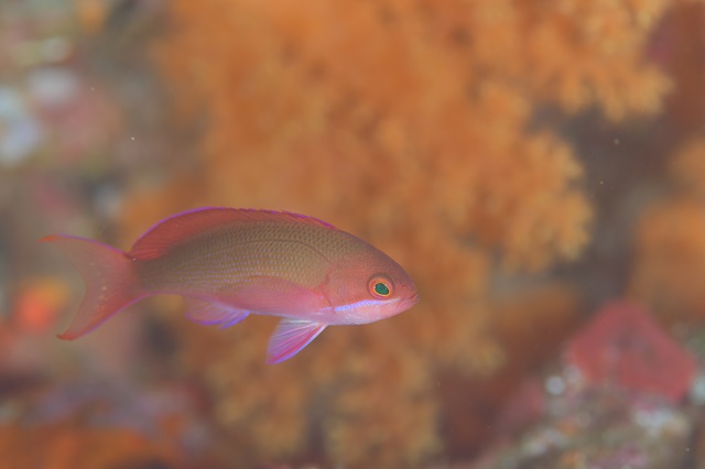 ![]() ソフトコーラルに乗っかってポージングしてくれるのはクダゴンベちゃん! この子も長期滞在中で、感謝感謝♪ |