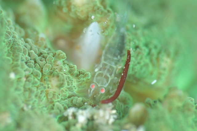 ![]() 何しろスケスケで、すぐどこに行ったか分からなくなる… ワライヤドリエビさんですo(^o^)o |