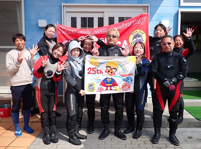 ![]() 恒例の周年記念 柏島ツアー! 今年で25周年!コロナ禍で、厳しい時代が続きますが、 26年目も皆様、どうぞ宜しくお願いいたします! |
