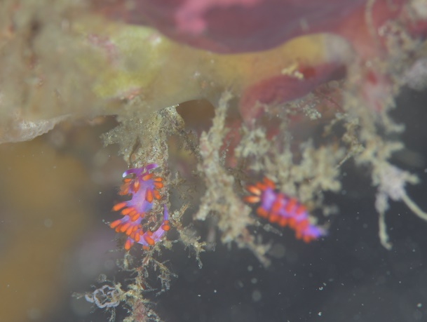 ![]() キレイなルージュミノウミウシのペア! このぶら下がってるところに美味しいゴハンがあるのかな? |