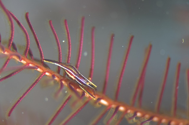 ![]() いつもはウミシダの奥底で撮影困難なエビさんが この日は表舞台に〜(^_-)-☆ |
