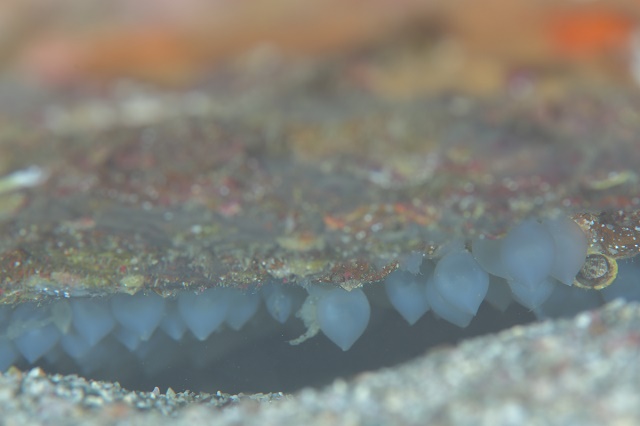 ![]() こちらがハナイカさんの卵! もう少ししたら、中に赤ちゃんイカの姿が見えてくるかな〜?楽しみです♪ |