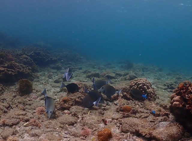 ![]() 穏やかなビーチでのんびり講習中もたくさんのお魚に遭遇! ニザダイは、夢中でランチタイムでした! |