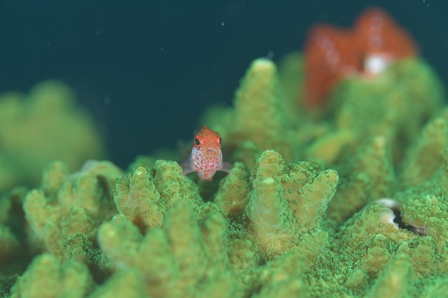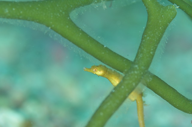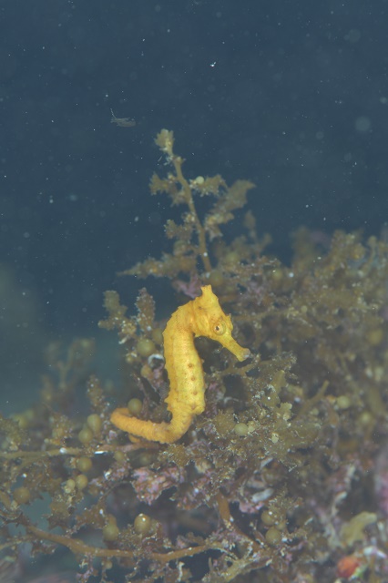 ![]() フラフラと、ホンダワラをあちこち移動中のオオウミウマのお子様! 見つかっちゃった…って顏してますね(#^.^#) |