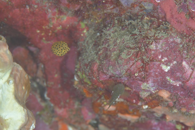 | 見られた生物 サービス前ビーチ:ミナミハコフグyg・クロホシイシモチ大群&口内保育・ソラスズメダイ群れ&卵・クマノミ&卵・チョウチョウウオ・コロダイ・シマアジ・ホウライヒメジ・コケギンポ・カゴカキダイ・テーブルサンゴの群生・ウツボ・モヨウモンガラドオシ・ハナミノカサゴ・オトヒメエビなど 住崎:キビナゴygの大群・カンパチyg・アオヤガラ群れ・グルクン群れ・ホウライヒメジ群れ・コロダイ群れ・イラ・オイランヨウジ・イタチウオ・ナミマツカサ・クエ・ニシキウミウシ・イガグリウミウシ・クチナシイロウミウシなど |