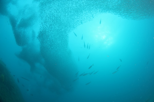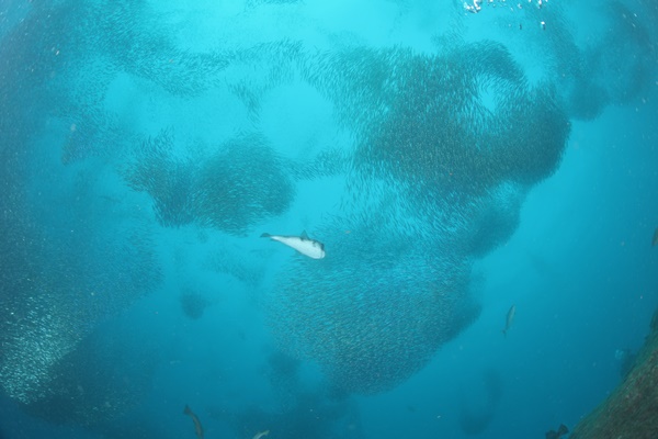 回遊魚のハンティングに逃げまどうキビナゴの群れが圧巻でした! |