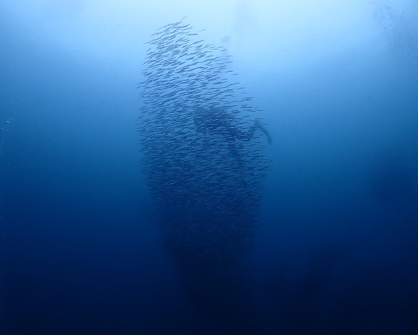 ![]() ダイバーがすっぽりキビナゴの塊に食べられた〜(笑) |