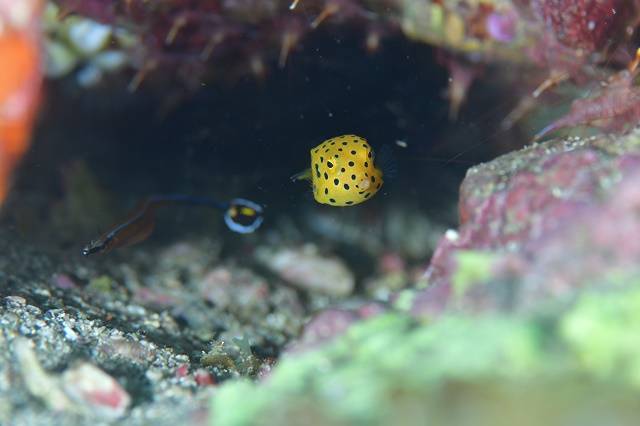 | 見られた生物 住崎:ニシキフウライウオのペア・ルリハタyg・オオモンカエルアンコウ・ホタテツノハゼのペア・ミナミハコフグyg・アカハチハゼyg・カンパチ&キビナゴ群れ・アオウミガメ・カモハラギンポ抱卵・クマノミの赤ちゃん&アカホシカクレエビの赤ちゃん・ナガサキスズメダイyg・キツネベラyg・ジョーフィッシュ・コケギンポ・アオサハギyg・アカヒメジの群れ・イシガキフグ・サザナミフグ・アジアコショウダイyg・メジナの大群など グラスワールド:ウミウシカクレエビonニシキウミウシ・ジョーフィッシュ赤ちゃん・ミナミハコフグyg×5・タツノイトコ・ツムブリの群れ・ガーデンイール・ハタタテハゼ×3・クマノミの赤ちゃん・カゴカキダイの群れ・ハナゴイ・ワニゴチ・ヤミテンジクダイ・クチナシイロウミウシ・キカモヨウウミウシ・イソバナカクレエビ・ナカソネカニダマシなど |