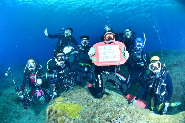 ![]() 先月と今月のお誕生日の皆様のお祝いも〜! Sちゃんは2年連続で久米島でハッピーバースデーでした(^-^) 皆様、おめでとうございます\(^-^)/ |