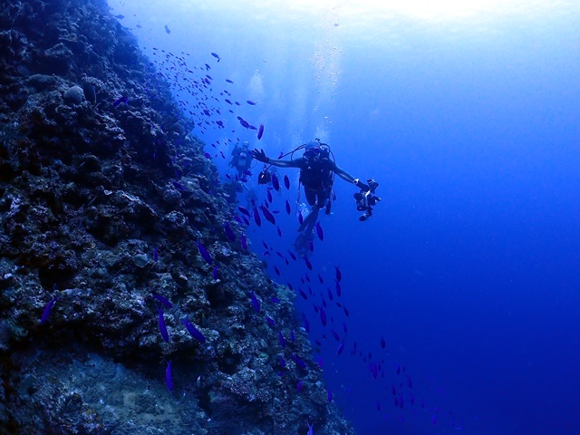 | 毎年恒例の久米島ツアーへ行ってきました! 梅雨なので、すっきりした空模様ではありませんでしたが そんなに雨にも降られず、コンディションのいい海で潜れました! 到着日は、早速の1ダイブ! 今日がチャンスかも?とトンバラへ行ってみましたが、 ビュンビュンの激流だったので、マンタステーションへ! すると、エントリーしてすぐにマンタが登場~♪ 大きな大きなマンタがグルグルとクリーニングステーションをまわって、 別の傷のあるマンタが私たちの目の前をゆーっくりと何度か通過してくれました! ![]() マンタを探しながらウロウロしていたら、なんとハナヒゲウツボのお子様にも遭遇♪ 近くの岩陰の小魚を威嚇するのにめっちゃ出て来てくれましたよ(笑) ![]() 翌日は、南寄りの風は強まり、北側のポイントへ! ウーマガイでは、地形と、沖縄らしい魚影を堪能(^-^) 少し深場では、スミレナガハナダイやフチドリハナダイなどきれいなハナダイも! ドロップオフでは、ハナゴイやカスミチョウチョウウオの群れがきれいでした(^-^) 他にはラブラブなキスジカンテンウミウシにも出会えました! ![]() 2本目は、イマズニへ! 毎年色んな出会いがありますが、今年はカマスの大群! ![]() 何度か大きな群れが行ったり来たりしてくれました! エキジット間際の根の上では、珍しいハクテンカタギもいましたよ(^-^) ![]() この日の三本目はトンバラザシでウミウシ探し♪ お目当てのウミウシには出会えませんでしたが、沖縄ならではのウミウシにまた出会えました! ![]() さて、あっという間にダイビング最終日♪ 風も弱まり、ビッグポイント トンバラへ~!! ここはだいたい流れているイメージなのに、この日は流れがまったくない… 時々ホワイトチップが横切っていきましたが 大物の群れは現れず、こんなにのんびり潜れるトンバラは逆に激レアですね! 2本目は、北側へ戻って、エルアプカでウミウシ探しや ドロップオフを満喫することに! ここはハナゴンベがびっくりするくらいいっぱいいました♪ ![]() 棚の上で、チャシボリガイさんを発見! ウミウシ大好きなTさんがめちゃくちゃ会いたかった子だったので、 じっくり写真撮っていただけて何よりでした\(^-^)/ ![]() 可愛いモンツキカエルウオもあっちこちにいて、この何とも言えない表情に癒されました! ![]() そして迎えたラストダイブ、検討の結果、もう一度トンバラへ行ってみることに! 潮の流れもでてきて、大物の出そうな気配! エントリーして少しすると、バラクーダの群れが登場♪ 流れに向かって頑張って泳いでいくとギンガメアジの群れも出ましたよ~\(^-^)/ 流れの中を泳ぐのはちょっと大変でしたが、おかげで素敵な出会いがありました! ![]() 1日で、流れのないトンバラと、流れのあるトンバラ、両方潜れて、ある意味ラッキーでしたね~\(^-^)/ ![]() 夜は、毎晩美味しい居酒屋さんで、ワイワイ楽しみました! ![]() ご参加いただきました皆様、有難うございました! JIC久米島の皆様も、お世話になりました!! 6月7日(金) マンタステーション:マンタ×2・ハナヒゲウツボyg 6月8日(土) ウーマガイ:ハナゴンベ・スミレナガハナダイ・フチドリハナダイ・キスジカンテンウミウシ交接中・カスミチョウチョウウオむれ・ハナゴイ群れ・ノコギリダイ群れ・グルクン群れ イマズニ:オオメカマス群れ・カスミアジ・イソマグロ・アカネハナゴイ群れ・ハクテンカタギ・イシガキカルウオ トンバラザシ:キスジカンテンウミウシ・ミゾレウミウシいっぱい・ユキヤマウミウシ交接中・モンツキカエルウオ・ヒナギンポ・イシガキカルウオ・グルクン群れ 6月9日(日) トンバラ×2:ギンガメアジの群れ・バラクーダ群れ・イソマグロ・ホワイトチップシャーク・グルクン群れ・ウメイロモドキ群れ・ナンヨウハギ・アカモンガラいっぱい エルアプカ:ハナゴンベいっぱい・マルスズメダイ・アマミスズメダイyg・グルクン群れ・ゼブラハゼ・オキナワスズメダイ群れ・モンツキカエルウオ・ヒトスジギンポ・チャシボリガイ |