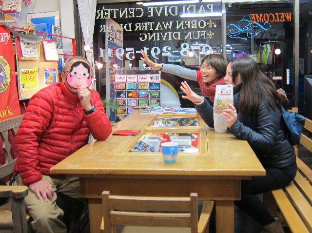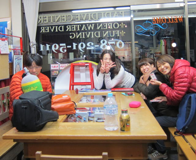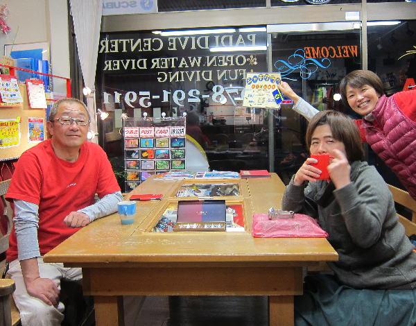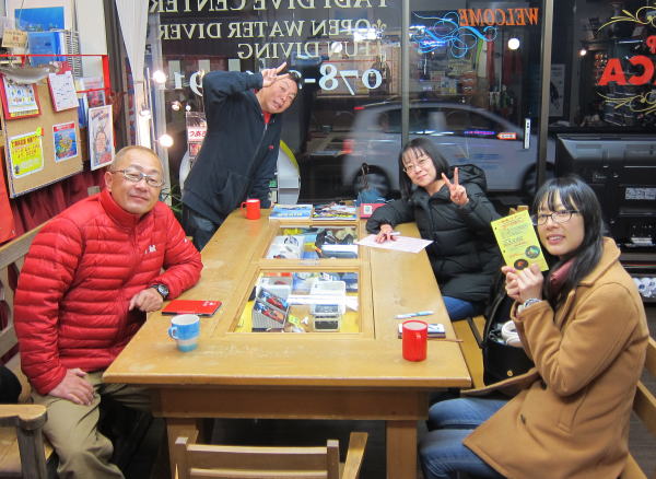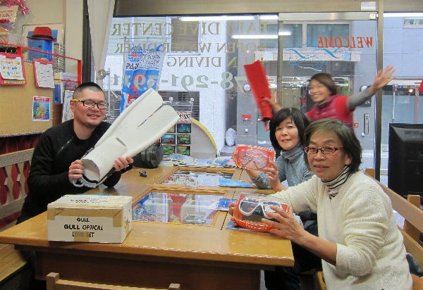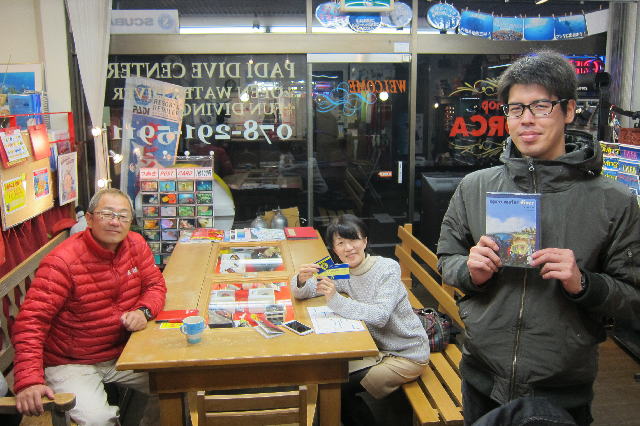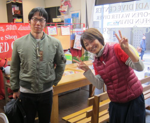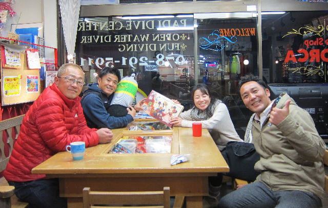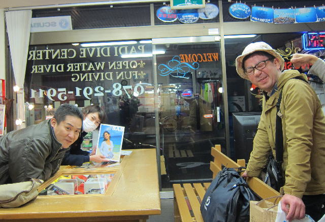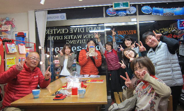 | 2017年1月20日(金) 沖縄からご来訪です! 今日は、お久しぶりに西表島のタケさんがご来訪されました! 南国からお越しなので、この寒さが身に染みるそうです(>_<) 冬の間も体を鍛えて頑張っておられるそうですよ~♪ 冬はどうしても引きこもりがちになってしまいますが、 見習わなくちゃな~(≧▼≦) ![]() 夜には、ツアーにご参加の方がご来店されて、串本へと出発~! ここのところ荒れることが多い串本ですが、土日はなんとか大丈夫そうかな(´∀`) 楽しんできてくださいね~!! ![]() そうそう、第25回串本海中フォトコンテストの結果が発表になりました~! なんと当店のゲスト Sさんが見事 入賞されております! ぜひご覧になってみてください(´∀`) コチラをクリックしてくださいね~!! では、週末も通常通り営業しておりますので、 皆様のご来店をお待ちしておりまーす!! お知らせです! 1月19日~2月28日まで、なんと須磨海浜水族園にて、 串本海中フォトコンテスト写真展が開催されます~\(^O^)/ ぜひぜひ皆様水族園へ遊びがてら、写真店も覗きにいってみてくださいね~! 詳しくはコチラへ! ここからは年末年始のイベントのご報告です! 楽しい楽しいクリパに忘年会に水中カウントダウン♪ 素敵な年末年始から、新たな2017年スタートです\(^O^)/ 本年もどうぞ宜しくお願いいたします! ![]() |