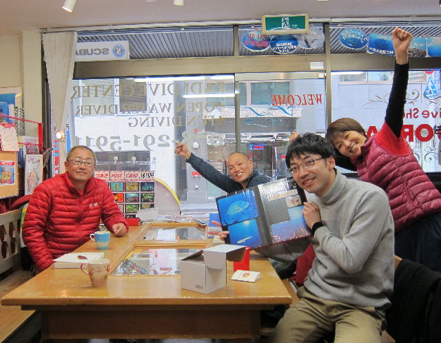| 2017年2月2日(木) こういう季節がやってきました! 2月頃、お店には毎年色々なエリアの現地サービスの方々が来られます! ちょうど昨年は2月1日にお越しいただいたエバーブルー屋久島の前田さん♪ 今年は久しぶりに屋久島ツアーを開催しようかと思っておりますので、 ぜひぜひ皆様のご参加をお待ちしております\(^O^)/ ![]() そして、さらに夜には、西表島ツアーでおなじみの次郎さん&千晴ちゃんがご来店(^-^) こちらも毎年恒例ですね~♪ 今年の夏には新艇就航予定ですので、今年の7月の西表島ツアーも要注目ですよ! 今年のビッグツアーの予定も色々決まってきたり、 11月にはどこへ行こうか、悩み中ですので、 「ここ行きたい!」というリクエストがありましたら、ひとまずお店まで(^_-)-☆ 皆様からのリクエストどしどし募集中です! ※ただし、諸事情によりここは無理です・・・という場合もございますので、 その辺りはご勘弁を~っ! では、明日は金曜日! あっという間に1週間過ぎていきますが、 皆様のご来店、お待ちしておりまーす!! 1月ラストの与那国島ツアーは、群れハンマーにも遭遇♪ しかも10分以上のランデブ~なんて素敵な出会いでしょうか(^-^) ハンマーポイントでは、単体~群れも含めると5戦全勝だったんですよ~っ! 詳しくはツアーフォト&ログをご覧くださいね(^_-)-☆→コチラ ![]() さてここでお知らせです! 1月19日~2月28日まで、なんと須磨海浜水族園にて、 串本海中フォトコンテスト写真展が開催されます~\(^O^)/ ぜひぜひ皆様水族園へ遊びがてら、写真店も覗きにいってみてくださいね~! 詳しくはコチラへ! |