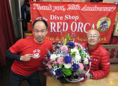| 2017年3月1日(水) 21周年記念を迎えました! 1996年3月1日に当店は明石市西新町で産声をあげました。 あれから丸21年! 長かったようで短かったようなあっという間の21年(^-^) これからも皆様にとにかく楽しいダイビングをお届けすること、 それだけを追求し、頑張っていきたいと思いますので どうぞ宜しくお願いいたしますm(_ _)m さて、そんな本日、まずは学科講習にお越しのKさん! あともう一息ですね~(^-^) 頑張りましょう♪ ![]() そして、ナ、ナ、ナント~ 三重県津市からMくん様がお祝いに来てくださいました~!!! ご来店されたときは、サングラスに帽子にマスクで 「お花が届いております~」と入って来られたので 本気で業者さんだと思ってしまいました(≧▼≦) いや~、本当に遠路はるばる有難うございました! 次はゆっくりご来店くださいね! ![]() そして、Tちゃんもお祝いにお越しくださいました! 有難うございます~!! お二人とも、午後からお仕事休みで来てくださって、 本当に感謝感激雨あられ~♪ これからも皆様にとにかくダイビングを楽しんでいただけるように全力でがんばりますっ!! ![]() 夜には、海洋実習に向けて器材のセッティングの練習にAさん親子もご来店! ドキドキワクワクの海洋実習、もうすぐですね~(^-^) どうぞ宜しくお願いします! ![]() お仕事帰りのKちゃん、Yっさん、Iさんも合流して 皆で21周年記念パーティーです~\(^O^)/ ご来店、有難うございました! ![]() 今日からは22年目に入ります。 これまで以上に、皆様にさらにさらに楽しいダイビングをお届けするべく スタッフ一同、頑張ってまいりますので、どうぞ宜しくお願いいたします! これからダイビングの扉をあけようという皆様も 後悔のない、このお店で本当によかったなぁ~と思っていただけるお店が 私たちの日々の目標です! ぜひまずはお店にお越しいただき、お話を聞きにいらしてくださいね! これからも宜しくお願いいたします! コチラもありますよ! ![]() そうです、毎年恒例の4月に東京で開催されるダイビングのBIGイベント~\(^O^)/ なかなか私達はお仕事があるので、見に行くことができませんが、 皆さんならできますよね~(^_-)-☆ 関東近郊にお住いの方も、そうでない方も、 お時間ありましたら、ぜひ行ってみてはいかがでしょうか~? 詳しくはコチラのサイトをご覧くださいね♪ 今年もあります、串本ダイビング祭り~♪ 5月20日(土)~21日(日)の予定ですので、 皆様、予定明けておいてくださいね~(^_-)-☆ 新商品をいち早く水中でお試し&夜は大BBQ大会&抽選会などもあって 毎年盛り上がっちゃいます! ![]() インスタグラム、もうすでにされている方も多いかと思いますが、 お店のインスタグラムのアカウントを取得しました~! 「redorca_diving」のユーザー名で登録してますので、 ぜひインスタ仲間の皆様、検索してフォローしてみてくださいね~! 宜しくお願いします!