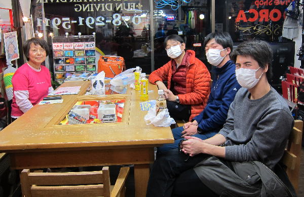 | 2017年3月18日(土) 三連休初日♪ 3連休がスタートしました~! いいお天気の連休になりそうですね(^-^) 明日の串本の気温なんて、最高17℃~?! めっちゃ暖かいやんっ♪ そんな土曜は、学科DAY~!一気にババーンと頑張っております(*^_^*) ![]() なんとお一人は埼玉県からお越しなんです(´∀`) 学科は3時間ほどで無事に終了~!そして、早速今夜から海へとでかけますよ♪ 宜しくお願いしまーす! ![]() 夜には全員集合~! 花粉症率高い~っ(>_<) 和歌山も花粉多そうだけど、水中は花粉ないですからねっ! 楽しんでいきましょう! ![]() それでは、行ってまいります! 週末は臨時休業でご迷惑をおかけしますが、宜しくお願いします! ~臨時休業のお知らせ~ 19日(日曜)~20日(月曜)まではツアーのため、臨時休業となりますので、 ご迷惑をおかけしますが、宜しくお願いいたします! 尚、休業中もメール及び電話は転送されますので、急ぎのご用の方はご利用ください。 21周年記念柏島ツアーのログと写真もアップしました~! 水中写真はいっぱいありますので、他のも見たーい、という方はお店でご覧になってくださいね! ![]() 4月にはコチラもありますよ! ![]() そうです、毎年恒例の4月に東京で開催されるダイビングのBIGイベント~\(^O^)/ なかなか私達はお仕事があるので、見に行くことができませんが、 皆さんならできますよね~(^_-)-☆ 関東近郊にお住いの方も、そうでない方も、 お時間ありましたら、ぜひ行ってみてはいかがでしょうか~? 詳しくはコチラのサイトをご覧くださいね♪ 今年もあります、串本ダイビング祭り~♪ 5月20日(土)~21日(日)の予定ですので、 皆様、予定明けておいてくださいね~(^_-)-☆ 新商品をいち早く水中でお試し&夜は大BBQ大会&抽選会などもあって 毎年盛り上がっちゃいます! ![]() インスタグラム、もうすでにされている方も多いかと思いますが、 お店のインスタグラムのアカウントを取得しました~! 「redorca_diving」のユーザー名で登録してますので、 ぜひインスタ仲間の皆様、検索してフォローしてみてくださいね~! 宜しくお願いします!