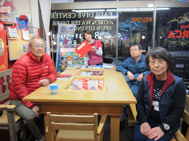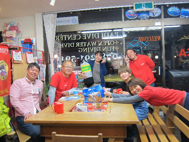 | 2017年2月13日(月) バレンタインイブ?! いよいよ明日はバレンタインデー♪ 今夜は気合を入れて手作りチョコレートを作られる方も多いのではないでしょうか? そんな季節ですが、甘いものは苦手気味なSボンがご来店です(^-^) 思い切ってアーモンドチョコがけのポテチに挑戦! これはまだ甘さが控えめなので大丈夫だったみたいです(´∀`) ![]() 一方、今日来られたKさんの娘さんは、今日はお家で色々作られていたそうです。 手作りでお渡しする皆さん、スゴイですね~(^-^) 尊敬しちゃいます! おすそ分けに娘さんの手作りチョコ ごちそうさまでした♪ ![]() そんなKさん、今年からシャチクラブにご入会いただきました~\(^O^)/ 特典を聞いて、めっちゃいいやんっ、とおっしゃっておられました! 有難うございます! なにそれ?という方は詳しくはお店まで~(^_-)-☆ ![]() そして、久米島のダイビングサービス JIC久米島の戸田さんもご来店です♪ 今年もこのエビス顔で皆様のお越しを待っていてくださるそうなので、 ぜひぜひ6月開催の久米島ツアー、ドシドシご参加くださいね(´∀`) 海も陸も最高ですからね~!! ![]() それでは、明日は定休日となりますので、また水曜日に皆様のお越しをお待ちしております! インスタグラム、もうすでにされている方も多いかと思いますが、 お店のインスタグラムのアカウントを取得しました~! 「redorca_diving」のユーザー名で登録してますので、 ぜひインスタ仲間の皆様、検索してフォローしてみてくださいね~! 宜しくお願いします!