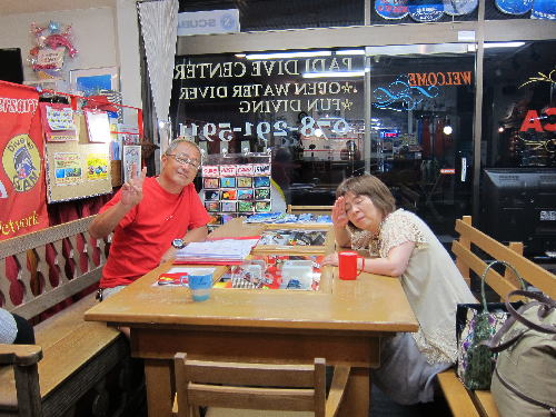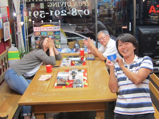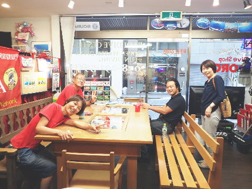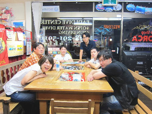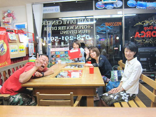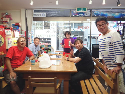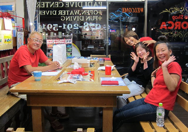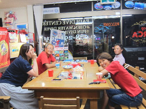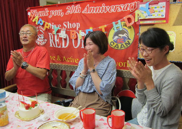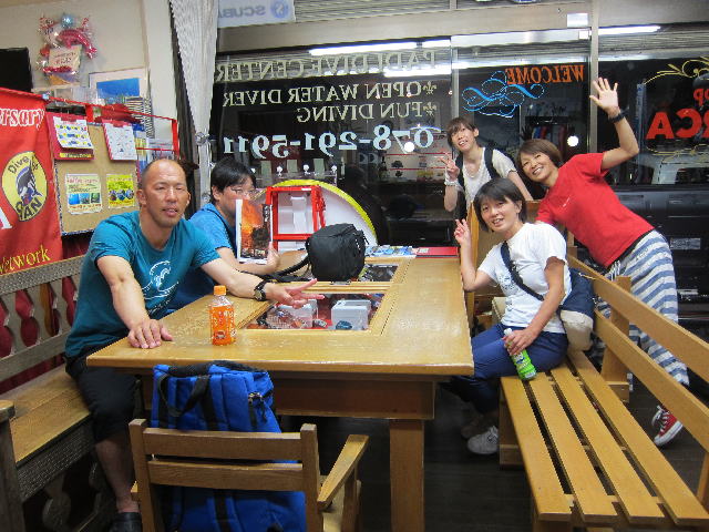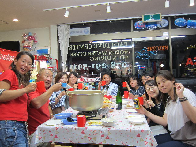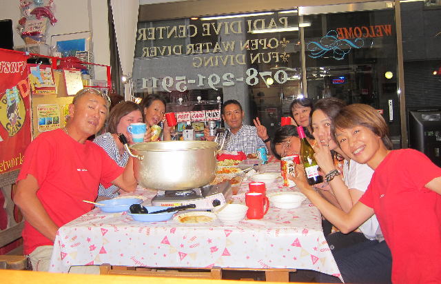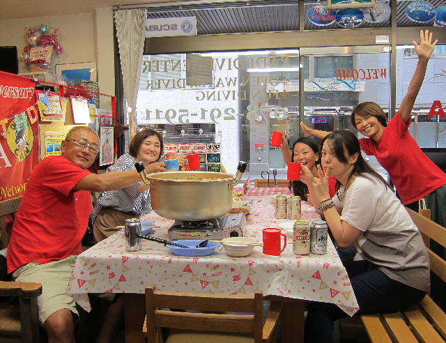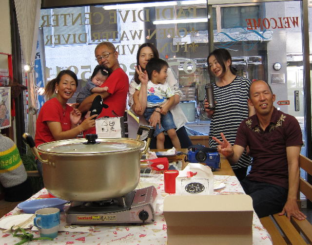 | 2017年9月17日(日) Party♪Party♪Party~♪ 今日はほぼ一日雨も降らず お店にいると風も感じられず 「ほんまに台風来てるんか~???」という一日でした(>_<) とりあえずダイビングはできないので、お店でパーティー開催です(*^_^*) まずは開始時刻に集まってくださった方と♪ ![]() 今日は、美味しいRED ORCAおでんに~♪ ![]() Rちゃんのお誕生日のお祝いメニューに~♪ ![]() Kっちゃんの手作り美味しいハンバーグetc ![]() お酒担当のSさんも来られて ![]() Kさんも変わり種のビールなどを色々買ってきてくださり~ ![]() どんどん賑やかになっていきます~\(^O^)/ ![]() こちらは行列のできる豆大福屋さんの豆大福~(^○^) 朝から買いに行って来て下さったそうで、有難うございます! ![]() ![]() 台風の予報にも関わらずお越しくださった皆様です! お腹いっぱいになりましたね~ ![]() そして、この日はRちゃんのお誕生日ということで、 お誕生日のお祝いです~\(^O^)/ 本当はお誕生日を海で迎えるはずでしたが、 パーティーでちょっとは気分が晴れたかな~♪ ダイビングはまたリベンジしましょうね! ![]() 楽しい1日になりました! 明日も通常通り営業しておりますので、台風一過の晴天! お出かけの際にはぜひ遊びにお立ち寄りくださいね~!! |