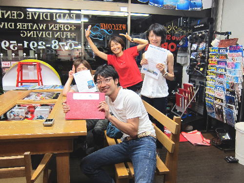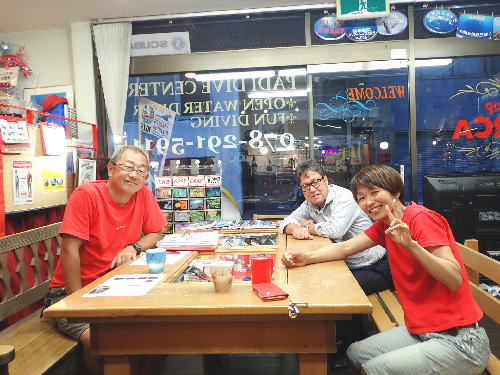 | 2017年8月10日(木) さあ、いよいよお盆ですね♪ 今日ぐらいからお休みのところもあるのでしょうか? 待ちに待ったお盆休みですね♪ 帰省したり、遊びに行ったり、潜ったりと色々ご予定を立てられているのかと思います。 もちろん我々はダイビング三昧です! 台風もできていないし、お天気もよさそうだし、いいお盆になりそう(^-^) 明日からは串本の海も大賑わいですが、毎年恒例、座間味ツアーへ出発です。 今年はどこのポイントも潜るのか!? 何に出会うのか!? どんな伝説が生まれるのか!? ワクワクがいっぱいです。 そんなワクワクいっぱいの座間味ツアーを明日に控えたKさんがご来店♪ 初沖縄、初座間味! 思いっきり楽しんで来てください!!! お盆は帰省されるRさん(´∀`) 帰省に向けて明日はお買い物だそうです♪ 海は月末の柏島~ そして、OW講習のIさんは学科バッチリ合格です! セッティングの練習もOK~ 後は海で楽しく講習しましょうね♪ 皆様、お盆休み楽しんでくださいね!!! |