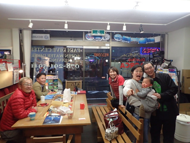 | 2018年1月10日(水) 寒くなりましたが負けませんよ~ 今年最初の三連休を潜り倒し、通常の営業です! え、寒気が来て寒くなった? いえいえ、だからこそ、当店で楽しいおしゃべりをして温まってください!!! 皆様が来られるのをお店でお待ちしてます! 寒さなんかに負けませんよ~! そんな中、可愛いお客様です。 皆様ご存知のA様ご夫妻と息子のK君♪ めっちゃ大きくなって、可愛いんですけど、ちょうど人見知り時期に突入したそうで、 まったく抱っこできず。 なんなら、近寄ることさえできなかった。。。 僕の顔見たら泣くんですもん(T_T) 優しい顔になるように、顔の筋肉をほぐしておきますね! 次来た時は遊んでくれるかなあ。。。。 そして、明けましておめでとうございますとYっさん! 今年もよろしくお願いいたします♪ この冬の計画はばっちりですね! 今年はダイビング一筋?でどんどん潜りに行きましょうね\(^O^)/