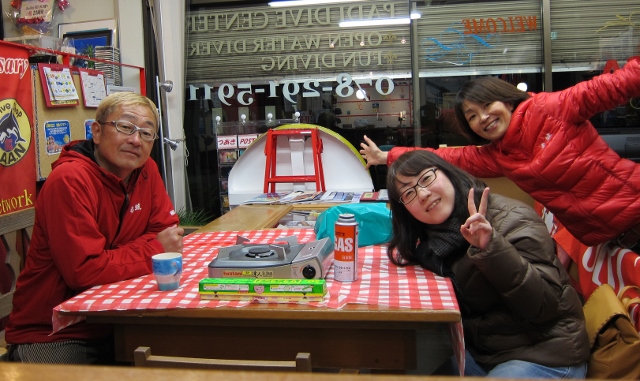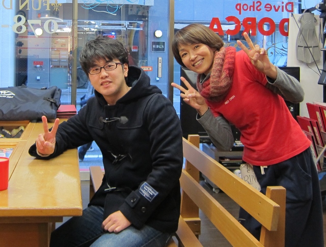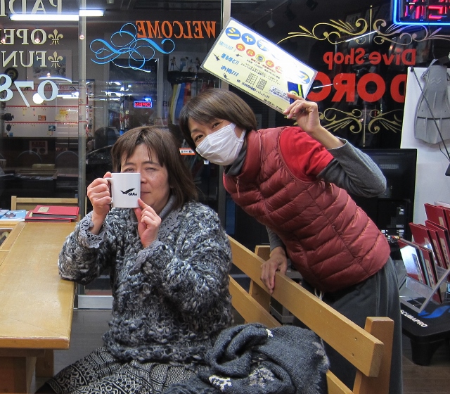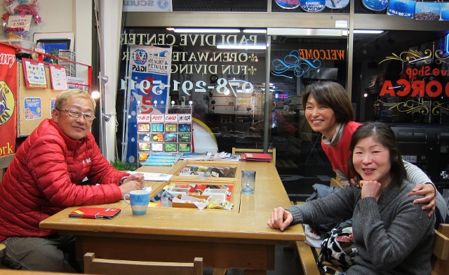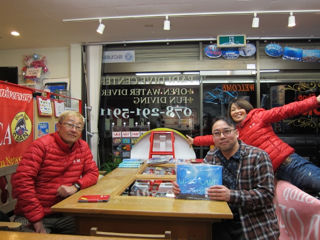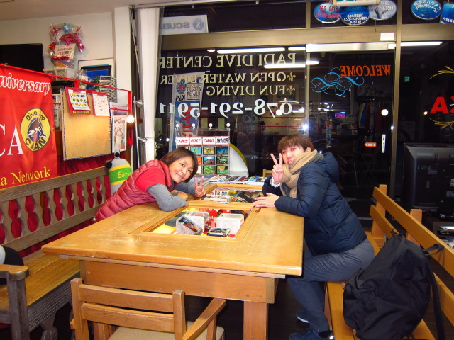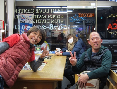 | 2018年1月22日(月) さぁ、今年こそダイビング始めましょ~う! 今日は、開店早々にDさんが淡路島よりお越しくださいました! 今までもダイビングやりたいな~と思っておられたそうなのですが、今年こそ! きっかけもあって、いよいよダイバーデビューされます(*^_^*) まずはお勉強、頑張ってくださいね~♪ そして、夕方には明けましておめでとうございます!なKさんと娘さんもご来店! 今年は少しスタートが遅くなりますが 1800本記念からの2000本目指して、楽しく潜りましょうね♪ ![]() |
