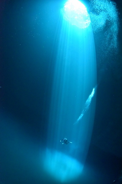 | 2018年3月8日(木) セノーテ最終章! 今日は予報通りのお天気になりましたね~。 風も強かったので、傘をさしている方々の傘が今にも壊れそうでした。 私の傘も思いっきりひっくり返ったのですが、そういう状況に強い傘だったので 見事に生き返りました(笑) きっと今夜は道端に壊れた傘がたくさん転がっていそうな気がします… さて、そんなあいにくのお天気ですが、お仕事帰りにお立寄りくださったのはSさん! 明日からの柏島ツアーにご参加予定です(^-^) なんと、Sさん随分前に四国に住んでおられた時に柏島でOWを取得されたとか♪ 久々の柏島は随分前とは違って見えるかもですね! 宜しくお願いします!! ![]() さて、今夜もセノーテの続きを~(^_-)-☆ ![]() これ何かわかりますか~? とってもユニークな形をした鍾乳石なんです! 現地スタッフさんも今回初めてゲストを連れていった、 というちょっと上級者向けのセノーテ「サポテ」というところです! 水深30mからこの不思議な鍾乳石パラダイスが始まっているんだそうですよ~♪ 『Hell's Bells』 と呼ばれていて、透明度の悪い水中に浮かび上がる鐘のような鍾乳石。 なぜこうなったのか、詳しくはわかっていないそうですが、神秘的ですね~(^-^) そして、今回のセノーテ ラストダイブになったのが『マラビージャ』 神秘的な光のカーテン!!水面から30mまで一直線に潜降ですよ~! 光の中にいると、あたり一面キラキラで、まぶしい☆ ![]() 光に吸い込まれていくと その光に自分の影がうつってるなんて、 こんな世界、見たことないです~\(^O^)/ ![]() そして、上空から一直線に差し込む光~♪ 物凄いポイントでこのセノーテツアーは締めくくられました! ![]() あ~、こんな映像を見せられたら、絶対に行きたくなっちゃいますね~(≧▼≦) いつか行けるといいな。 いつかツアーが組めるといいな。 皆様からのリクエストをお待ちしておりますよ~っ(^_-)-☆ |