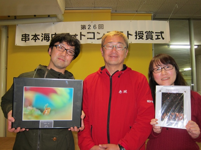 | 2018年3月4日(日) 串本フォトコン授賞式行って来ました! さて、先日の日記にも書きましたが、 Sちゃんがこの度、串本海中フォトコンテスト チャレンジ部門で見事入選!! 週末はフォトコン授賞式へ行って来ましたよ! そして、久しぶりのダイビングも楽しんできました(*^_^*) ![]() 今年はNEWカメラデビューして、 さらに感性溢れる素敵な写真をいっぱい撮ってくださいね~♪ そして、この日記をご覧の当店のゲストの皆さまも~ 今年の串本フォトコンにはぜひぜひご応募ください!! では、また明日~!! |