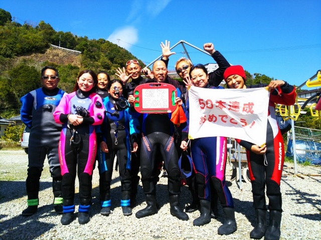 | 2018年3月18日(日) 50本おめでとうございます! 串本から帰ってきました~! 水温はさておき、めっちゃキレイやった~\(^O^)/ お天気もよくて、快適な二日間、6ダイブしてきました! そして、初日はYさんの50本記念でした♪ いいペースで潜り続けているYさん、 これからは水中撮影も楽しみながら、さらなるスキルアップ目指してくださいね! おめでとうございました(^-^) ![]() 週末のログは明日以降にアップしますので、 お楽しみに~♪ |