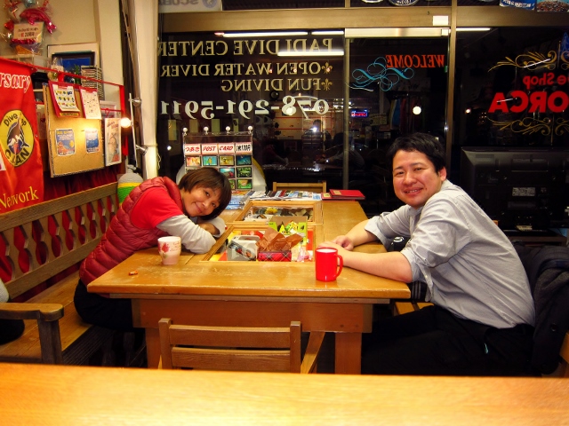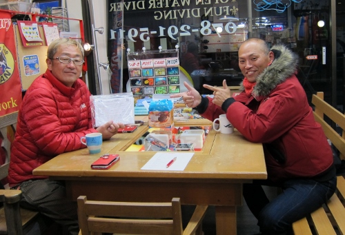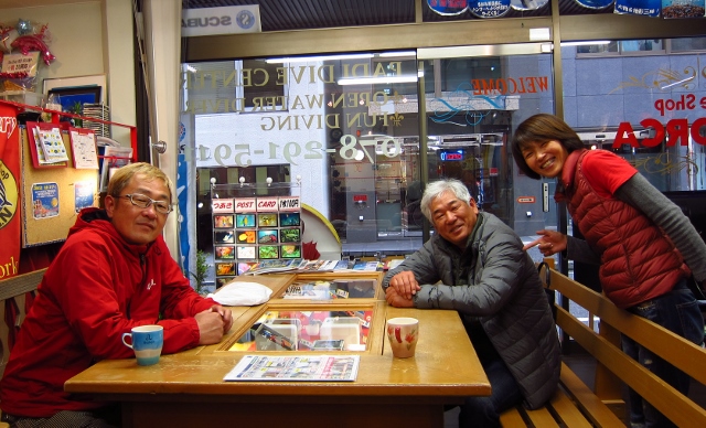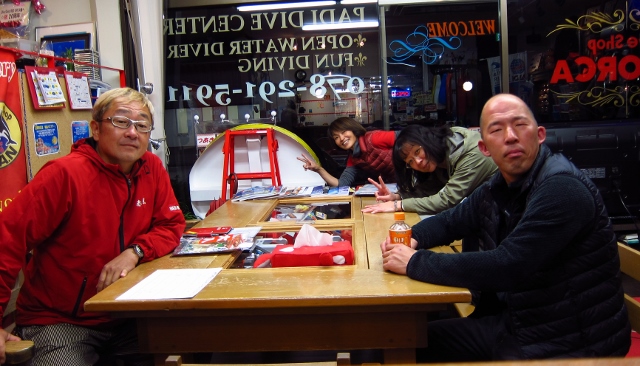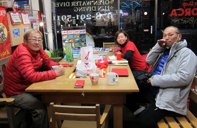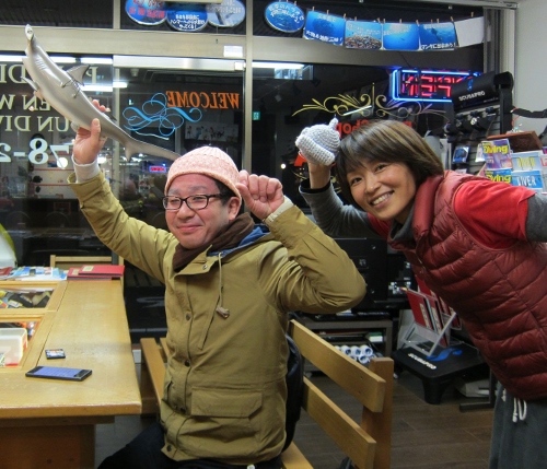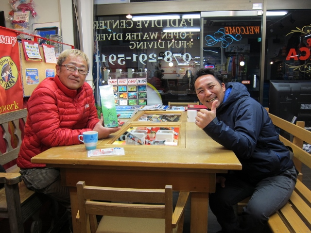 | 2018年1月15日(月) 寒さが緩んだ1日でした♪ 今日は少し寒さが緩くなった感じです。 それだけで過ごしやすいですねえ(´∀`) このまま暖かくならないかなあ。。。 とはいえ、油断は禁物です! 皆様、風邪などひかないようにご注意くださいね♪ そういえば以前は今日が成人の日でした。 今は毎年日が違いますけど、なんとなく、成人の日といえば1月15日な気がします。 こういうところでジェネレーションギャップって生まれるのかなあ(笑) さて、夕方に与那国ツアーにご参加のTミーがご来店! 準備も万端♪ あとは寒波が来ないことを祈るのみ!!! すんごい数のハンマーと遭遇している姿を妄想中だそうです♪ その妄想が叶いますように(≧▼≦) よろしくお願いしますよ~!!! なーんて、お話ししてたら、お久しぶりのI様がお越しになりました。 Tミーと久々の再会~ 世代を超えて、平日の串本を楽しまれたお二人! ダイビングって色んな世代の人と楽しめるのがステキなところだと思います(^-^) 2018年はタイミングが合えば、是非ツアーに行きましょうね♪ |