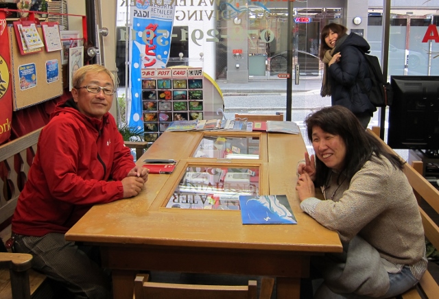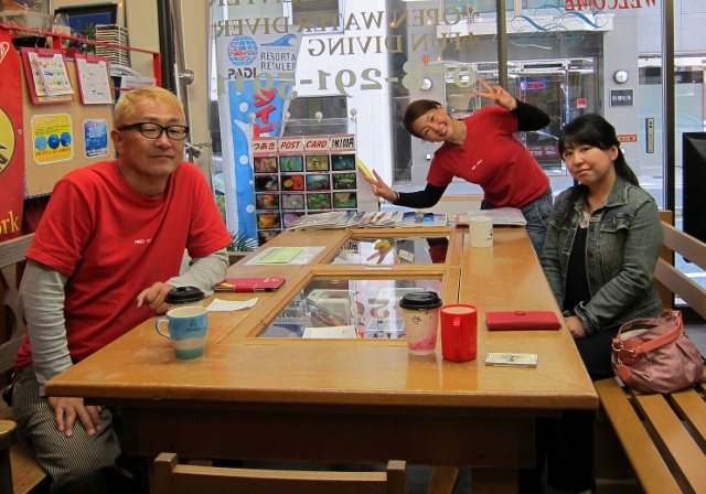 | 2018年1月17日(水) 今年の計画はお早めに! しとしととよく雨の降る1日でした。 でも、すこし暖かだったので良しとします! 明日は晴れますように♪ そんな雨の中をお越しになったのはM様♪ 今週末は串本でAOW講習です! ってことで、ちょっとお勉強です(^-^) 良い感じで仕上げられてます♪ 週末は海も穏やかそうなので、のんびり楽しみながらスキルアップしましょうね~ そして、西表島ツアーでおなじみの次郎さん&千晴さんがご来店でした! ようこそ、いらっしゃいました~!!! もちろん今年も7月にお世話になります! よろしくお願いいたします(≧▼≦) 皆様~!7月の西表島ツアーいかがですか!!! K君もお仕事帰りにお立寄り♪ 公私ともに充実されてるようです! もうすぐ大事な日を迎えますからね。 くれぐれも体調にはお気を付け下さいよ~!!! 皆様はどこへ潜りに行きますか? 早めに今年の計画を立てて楽しく潜りましょう(^_-)-☆ |