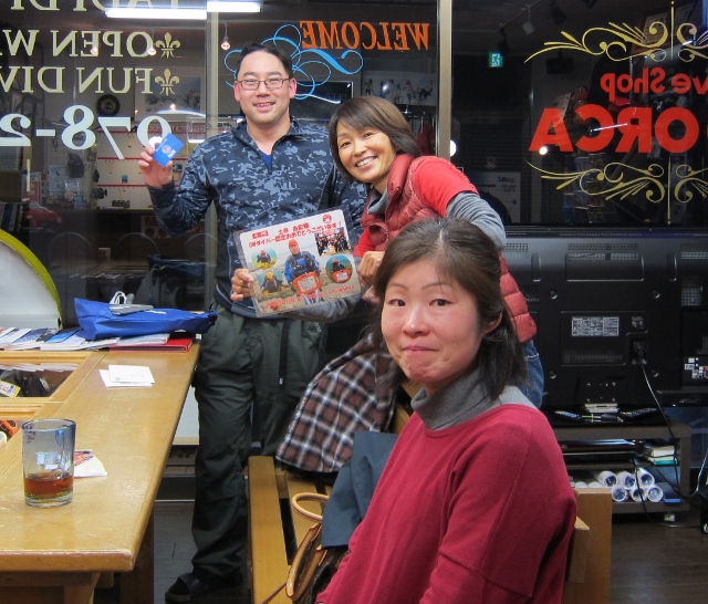 | 2018年3月7日(水) おめでたいっ! 明日からまたお天気下り坂だそうですね~(>_<) でも、週末は晴れ予報なので、よしとしましょう♪ さて、水曜の昼下がり~ KさんとUちゃんがお越しになりました! Kさん、実は私がまだまだペーペーダイバーだった頃に ツアーでご一緒させていただいたこともあるんです~(^-^) また海でも宜しくお願いします!! Uちゃんもパラオのお休み取れてよかったですね~♪ 宜しくお願いします!! ![]() 夜にはおめでたいお二人もご来店♪ 実は・・・婚姻届けの証人欄にサインさせていただきました~(≧▼≦) 実物の婚姻届け初めてみました(笑) 結婚式も近づいてきましたねぇ、末永くお幸せに~(*^_^*) そして、末永くダイビングも続けていきましょうね~っ!! ![]() 明日 木曜日は春の嵐になるそうです。 皆様、くれぐれもお気を付けくださいね(^_-)-☆ お店は嵐がこようがなんだろうが開いてますので 遊びにいらしてくださいね~っ!! |