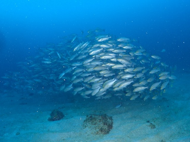 | 2018年8月19日(日) イサキ トルネードっ!! 台風の影響が心配された週末の串本でしたが、 土曜はべた凪♪ 今日は水面の風波はありましたが、 水中はうねりもほとんどなく、超快適なダイビングでした\(^O^)/ そして、いま、串本でフィーバーしているイサキのトルネードにも出会うことができました~♪ まだまだ続いてほしいですが…いつまでかな(^_-)-☆ また明日にでもトルネードの素敵な写真をアップしますね! まずは大満足で帰って来られた皆様です! ![]() それでは、また明日~\(^O^)/ 宜しくお願いしまーす!! |