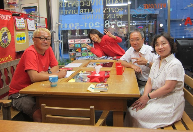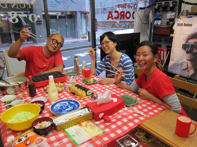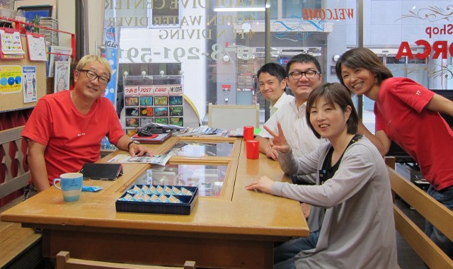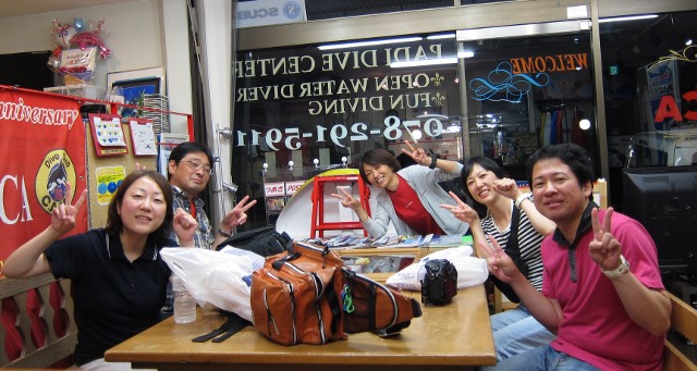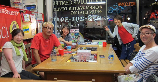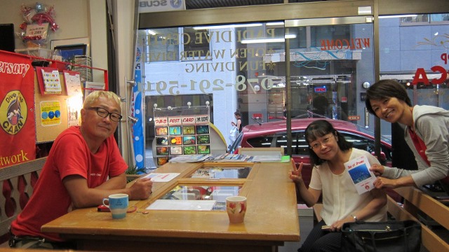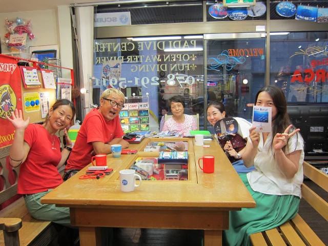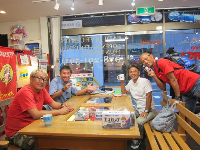 | 2018年7月18日(水) 猛暑が続きます、熱中症にご注意を~! 今日、ニュースでは岐阜県で最高気温が40℃を記録したとか~(>_<) 体温だとしたら、もう平熱を通り越して高熱ですっ! 熱中症で搬送された人数も1万人を超える勢い… 皆様もしっかり水分補給して、対策なさってくださいね(^_-)-☆ そんな気温の中でしたが、 久しぶりにダイビングを復活したい、という方が来られました。 暑いからこそ、海へ行きたくなりますよね~♪ 週末のツアーにご参加いただいたKっちゃんは、 月末の西表島ツアーに向けて器材を引き取りにご来店! 早速、今夜発送されるそうですよ! あとは、もう少し寝ると~西表です~(^-^) ![]() 夜には、学科講習のIさん&Nさんがご来店! お二人の学科中には、 続々と先輩ダイバーの方々も集まって、ワイワイモードになりました\(^O^)/ 今月や来月のダイビング予定も色々決まって、 夏のダイビング楽しみいっぱいですね~♪宜しくお願いします! ![]() お久しぶりのSっちゃんも色々バタバタされてたのも落ち着かれたみたいです。 来月は久しぶりの串本の海、満喫しましょう(^-^) ![]() 週末の海の日ツアーのログ&フォトをアップしました! 穏やかで晴天に恵まれた3連休、ご参加いただいた皆様、有難うございました~!