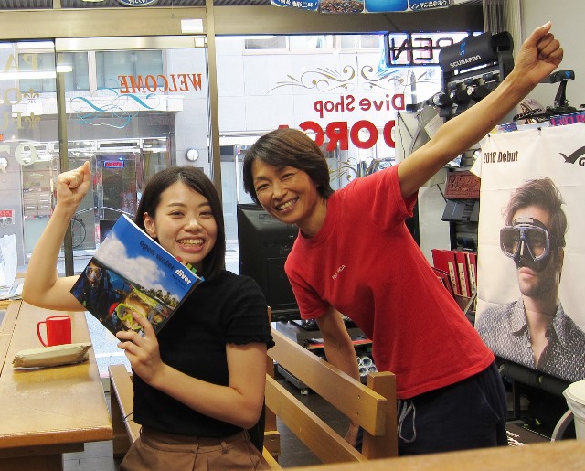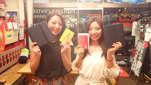 | 2018年8月26日(日) 柏島 キレイでした~♪ 台風の影響を心配した週末でしたが、 柏島はほぼ影響はゼロ! むしろ水温も安定して、きれいな海を楽しめました! ご参加いただきました皆様、有難うございました~!! ![]() そして、ツアーから帰ってきたらこんなお二人さんもご来店~(^-^) ログがそろそろなくなっちゃう、ということで、 NEW ログブックをご購入くださいました~! これで、ダイバーとしての大人の階段をまた一歩登りましたね(^_-)-☆ あとは、とにかく潜るのみっ!まずは50本目指して、頑張りましょーう!! ![]() では、また明日~!! |