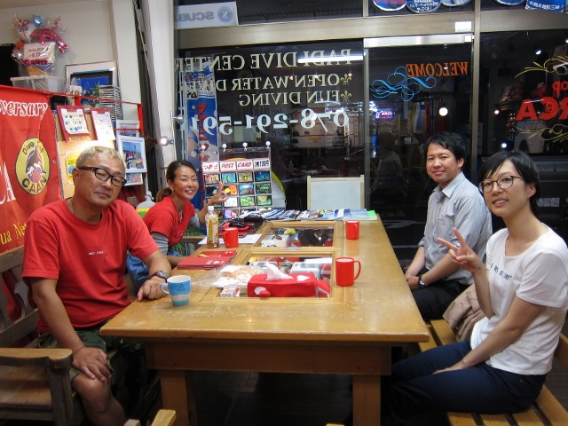 | 2018年7月13日(金) 13日の金曜日でした~(≧▼≦) こうやって、日付を書いてから、今日が13日の金曜日なことに気が付きました( ´∀` ) まぁ、でもあんまり関係ないですかね~♪ お天気もいい金曜日、Mさんは初の学科講習~(^-^) 人生色々なMさんのお話も伺いつつ、順調に進みましたね! 来週も宜しくお願いします! ![]() 夜には、水中写真家の鍵井さんがご来店~♪ 突然のご来店でしたので、ゲスト様にはお声がけできずに残念でしたが