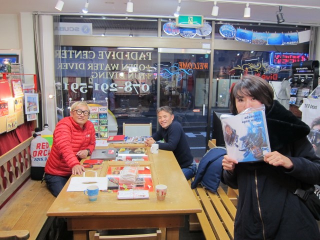 | 2019年1月24日(木) もうすぐ♪ 今日は、今週末のツアーでエンリッチSP受講予定のAちゃんが お申込にお越しになりました! えっと~、明日の夜からだよねぇ(笑) 勉強、頑張ってくださいね!! そして、もうすぐ与那国ハンマーツアーにご参加予定のUちゃんも研修帰りにご来店\(^O^)/ 初の与那国島、ドキドキ★ワクワクですね~♪ 職場でインフルエンザ流行中だそうなので、くれぐれもお気を付けくださいね~!! ![]() そして、Iさんはシャチクラブの更新にお越しくださいました~!! 更新がまだの方は、ひとまずログブックとカードをお持ちになって、 レッドオルカまでお越しくださいね(^_-)-☆ お待ちしておりまーす!! ![]() さて、明日の夜からは串本ツアーです! 寒気が下りてくる予報…なんとか予報がいい方に外れてくれますように~(´∀`) お店は21時まで営業しておりますので、 いつでも遊びにいらしてくださいね~♪ |