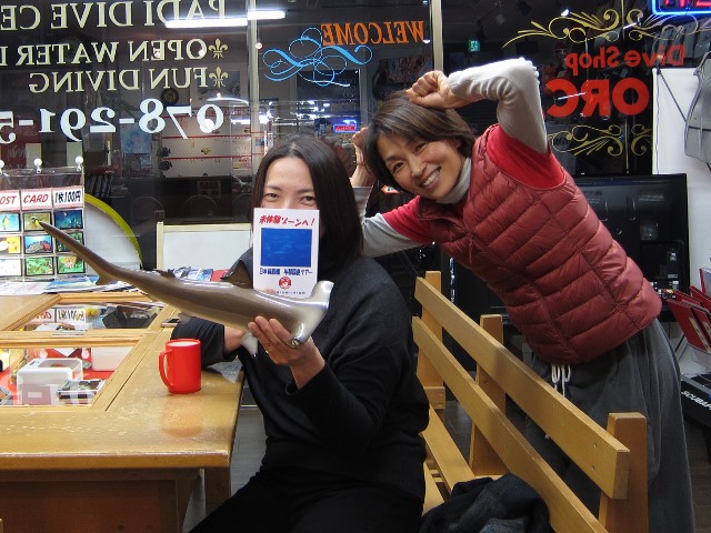 | 2019年1月31日(木) 1月は行く! あっという間に1月最終日です~(≧▼≦) この調子で今年もあっという間にどんどん時間が過ぎていくんでしょうね…(笑) そしてそんな1月最終日は久々の本格的な雨~☔ おかげで湿度がちょっと潤ってます(^-^) そんな本日は、今夜から北海道旅行へ行くというTミーがご来店♪ 職場でもインフルエンザでたそうで、完全防備して出発するそうです! 気を付けて行ってきて下さいね(^_-)-☆ ![]() 閉店ぎりぎりに飛び込んできたのはKさん~! 以前からドライスーツの修理をしなくちゃ、と言っていたので、 春に間に合うように出しに来てくださいました! さぁ、これで今年は去年の倍はもぐりましょーっ\(^O^)/ ![]() さて、明日からは日本最西端 与那国島ツアースタートです♪ 今年はなんと珍しくレディースツアーとなりました~(´∀`) こんなことは与那国島ツアー始まって以来ではないでしょうか~っ!! 与那国島で見られるハンマーも皆メスと言われているので レディースチームでレディースシャーク達に会ってきますね~(*^_^*) ![]() ![]() 久々の3ケタハンマーに出会えますように~!!!!! ~臨時休業のお知らせ~ 2月1日(金)~4日(月)までツアーのため、臨時休業となります。 皆様には大変ご迷惑をおかけしますが、宜しくお願いします。 なお、休業中はメール及び電話は転送されますので、ご用の方はご利用ください! |