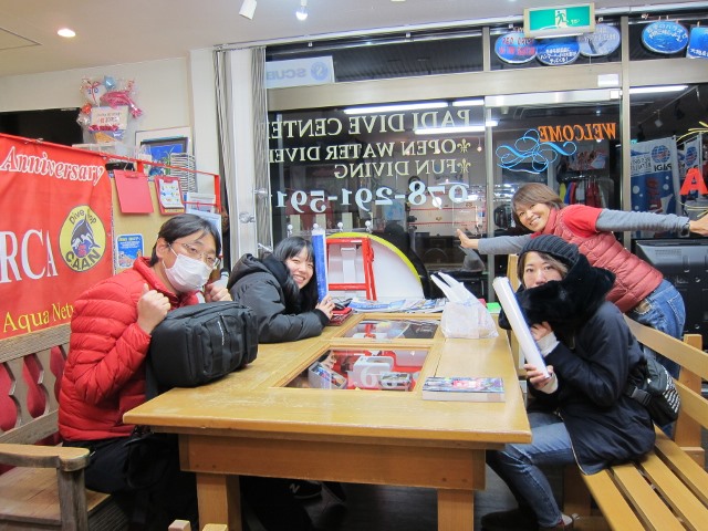 | 2019年2月28日(木) カードゲットだっ! おーっと、気が付けば明日から3月ではないですか~っ\(^O^)/ 本当に1月、2月と時間の過ぎるのがめっちゃ早い!! 明日、当店は23周年を迎えます(^-^) ツアー出発日なので、特に何のイベントもないのですが…(>_<) もしよろしければ、皆様遊びにいらしてくださいね~♪ さて、2月最終日は、昨年OWを取得されたお二人がようやくカードをゲット!! 「怖い」「怖い」言いながらも、最後は笑顔で取得されたお二人(*^_^*) 間があいて、また怖くなっちゃってると思いますが…(笑) またブランク解消にお越しくださいね!! ![]() ご近所にお住いのIさんも合流~っ!! 春ももうすぐそこまで来てますので、お待ちしておりますよ~♪ ![]() 夜には、お仕事帰りのMさんが一生懸命学科講習中!! なんと昨日必死に頑張って予習をしてきてくださったそうです(*^_^*) 1週間前にお申込いただいて、もう今週末には海洋実習行っちゃいますよ~♪ ![]() 頑張りましたね(´∀`) さぁ、楽しいダイビングライフ スタートしちゃいましょう♪ ![]() それでは、また明日~\(^O^)/ ~臨時休業のお知らせ~ 3月2日(土)~3日(日)までツアーのため、臨時休業となります。 皆様には大変ご迷惑をおかけしますが、宜しくお願いします。 なお、休業中はメール及び電話は転送されますので、ご用の方はご利用ください! |