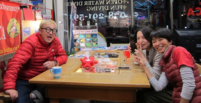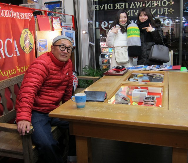 | 2019年1月18日(金) 朝から突然の訪問(^-^) 今日は開店して早々に扉が開きまして 串本の赤鯱ダイビングサービスをいつもご利用いただいているIさん 静岡県にお住まいなんですが、突然の神戸ご訪問でした(^-^) お仕事で時々神戸に来られることがあるそうなんですが、 いつも閉まっていることが多かったようで…申し訳ありません(>_<) またいつでもお立ち寄りくださいね! ![]() ところで、最近ニュースでインフルエンザの大流行が話題になっていますね~! 毎年のことではありますが、なんとかこの冬もインフルエンザから逃げ切りたいものです! フェイスブックのニュースで「インフルエンザ予防に紅茶が効く!」と書いてあったのを読んで 早速紅茶を飲んでいる私(´∀`) ニュースが気になる方はコチラをクリック♪ 信じた方は早速飲んでみてくださいね~! 夜には今週末、海へ行かれる皆様が集合~♪ 初めての冬の海の方もいらっしゃいますが、 対策を万全にすれば、キレイな冬の海は最高ですからね~\(^O^)/ 楽しみましょうね! ![]() それでは、また串本へ行ってまいりまーす!! ~臨時休業のお知らせ~ 大変恐れ入りますが、1月19日(土)~20日(月)まで、ツアーのため、臨時休業となります。 なお、休業中もメール及び電話は転送されますので、ご用の方はご利用ください! |