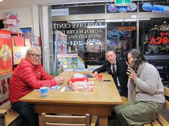 | 2019年1月30日(水) 遅ればせながらのあけおめもありです! 1月も終わりが見えてきましたね~(*^_^*) 金曜日からは年に一度の沖縄 与那国島ツアーです\(^O^)/ ハンマーさんにいっぱい会えますように♪ Tさんはいよいよ今週末に一眼水中デビューですね~(´∀`) ドキドキ★ワクワク 楽しんでくださいね! ![]() 夜にはKっちゃんが与那国ツアーの準備でご来店~!! 先日がお誕生日だったので、美味しいワインでプチお誕生日パーティー開催です(*^_^*) ![]() そこへ明けましておめでとうございます!と新年のご挨拶にSっちゃんがお越しくださいました! なかなか潜れていないそうですが、今年も宜しくお願いします♪ ![]() そういえばお昼間もYさんが新年の挨拶にお越しくださいました! なんでも今年の秋からワーホリを計画しているそうで、 頑張ってくださいね~♪ それでは、明日は通常通り営業しております! 明後日からはまたツアーのため、臨時休業になりますので、 皆様のご来店をお待ちしております\(^O^)/ ~臨時休業のお知らせ~ 2月1日(金)~3日(日)までツアーのため、臨時休業となります。 皆様には大変ご迷惑をおかけしますが、宜しくお願いします。 なお、休業中はメール及び電話は転送されますので、ご用の方はご利用ください! |