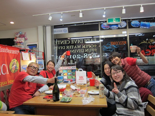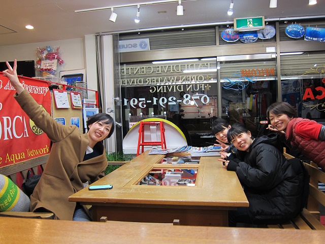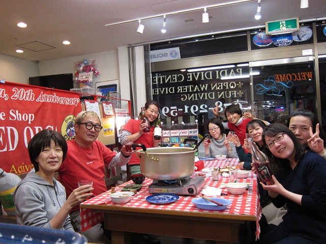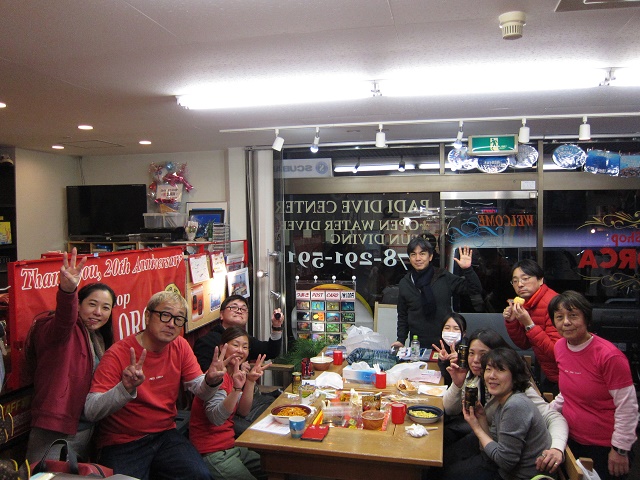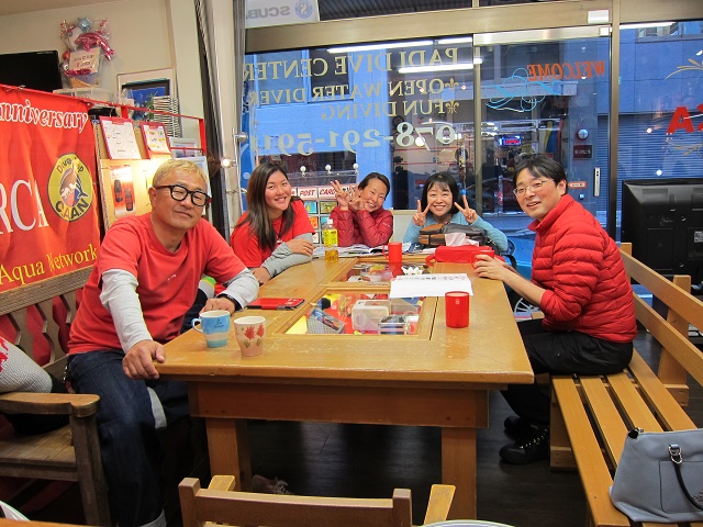 | 2019年1月20日(日) たこパサンデー(´∀`) 昨日は少し水面がパシャパシャした土曜日でしたが、 今日は前日からの予報でボートはクローズに…(>_<) 残念ではありましたが、Yさんのアドバンス講習は無事に修了! そして、お昼からたこ焼き&お鍋パーティーとなりました~♪ もちろん潜れた方がいいのですが、 潜れない時も思いっきり楽しむのがレッドオルカの流儀(笑) ということで、美味しいものをいっぱい食べて、楽しくおしゃべりをいっぱいして、 帰ってきました~\(^O^)/ ご参加いただきました皆様、有難うございました! 来週は穏やかな週末になりますように~♪ ![]() 明日は通常通り営業いたしますので、 皆様のお越しをお待ちしております\(^O^)/ インフルエンザ流行ってきているようですので、皆様くれぐれもお気を付けくださいね! |