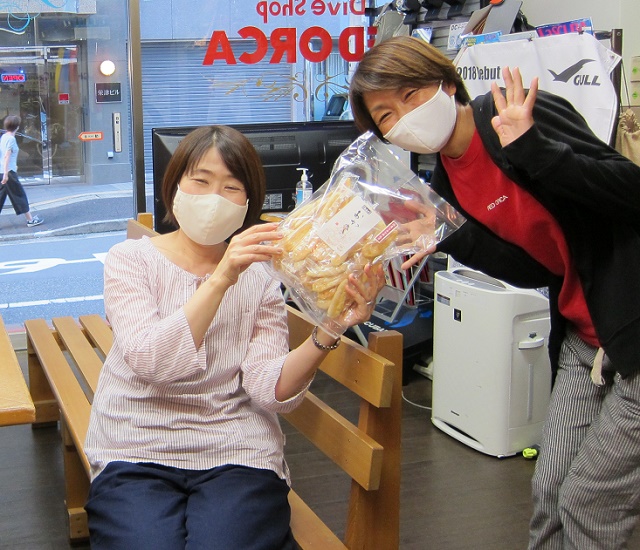 | 2020年8月28日(金) お久しぶりです(^-^) 今年は、新型コロナウイルスの流行拡大の影響を何かと受けられた方が多いと思うのですが… 今年こそ、と3年ぶりのダイビングを計画していたら、 コロナで行けなくなり、ブランクがどんどん延びていっているイチゴ屋のOさん。 去年一昨年は、ケガで夏を棒に振り、今年はコロナ… まぁ、そういうことも長い人生ではあるのかもしれません。 気を取り直して、来年こそは!と、そのためにもしっかり体調管理お願いしますね(^_-)-☆ ![]() そして、Rさんも、一体いつぶりでしょうか? 半年以上ぶりかもですね。 ストレスからか、色々体に不調があったそうですが、 来月はいよいよ久しぶりに潜りに行けそうですね。 それまで、ケガにはくれぐれもお気をつけてお過ごしくださいね! ![]() 大好きなお菓子をいただいて、浮かれております~♪ ということで、今夜からはおじさま方と串本へ! 台風が続々とできていますが、この週末はなんとか影響なく潜れそうかな。 ![]() では、行ってきまーす! ~臨時休業のお知らせ~ 誠に恐れ入りますが、ツアーのため、29日(土)~30日(日)は、臨時休業となります。 休業中も、メールおよび電話などは転送されますので、御用の方はご利用ください! 大変ご迷惑をおかけしますが、宜しくお願いします。 |