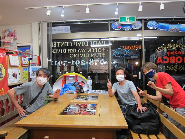 | 2020年8月17日(月) 長らくお待たせいたしました! 今月に入ってからは、ツアーや海の予定で、 お店がほとんど臨時休業で、大変申し訳ありませんm(_ _)m 今週は、水~金は、通常通り営業予定ですので、 御用の方はぜひピンポイント狙ってご来店くださいね(^_-)-☆ お盆期間中は、ずっと串本で潜っていたのですが、 前半は、黒潮大蛇行の影響が続き、 低水温とやや濁り気味の海でした。 後半に入り、紀伊半島の東側に黒潮が接近してきたおかげで どんどん水温も透明度も上昇~♪ ![]() 最後には、とんでもなく青い青い海になりましたよ~♪ ![]() しばらくこの状況が続けば、水中もさらにいろいろな生物の登場で賑わってくれるかも! 楽しみです(#^.^#) そして、とっても久しぶりの神戸のお店の営業! 早速、色々な方がお越しくださいました! 15年ぶりのファンダイブのお問合せや、 サイクリングコースでお越しくださったKさんに 私の大好物を持ってきて下さったKっちゃん ![]() そして、シュノーケリング用品を見に来られた外国人の方など バラエティ豊かな感じになりました(^.^) 明日は、定休日のため、お休みとなりますが、 水曜は、通常通り営業いたしますので、 宜しくお願いいたします。 |