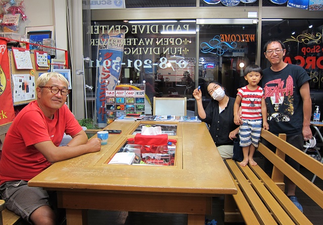 | 2020年7月16日(木) お久しぶりです! 今日は、お久しぶりのTさんがご来店~! 6月に関西へ転勤で戻ってこられたそうで、 早速ツアーのお問合せをいただきました! これから、またレッドオルカツアー、じゃんじゃんご参加くださいね(^_-)-☆ ![]() そして、そして、念願のMくんとご対面の社長、満面のほほ笑みです! ![]() Mくんはとってもお利口さんで、本当に可愛い~♪ そんなMくんの笑顔にメロっとなっちゃうFさんは、明日から西表~!! 楽しんで来てくださいね\(^-^)/ ![]() それでは、明日から西表島ツアーもあり、お店は日曜まで臨時休業となります。 ご迷惑をおかけしますが、よろしくお願いします! ~臨時休業のお知らせ~ 恐れ入りますが、ツアーのため、7月17日(金)~19日(日)は、臨時休業となります。 休業中も、メールおよび電話などは転送されますので、御用の方はご利用ください! 宜しくお願いします。 |