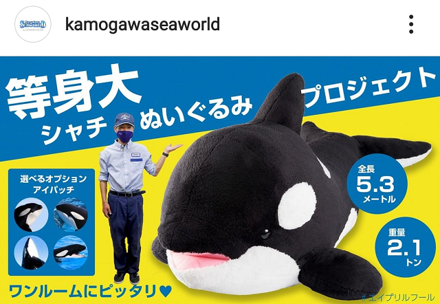 | 2021年4月2日(金) 続・エイプリルフール! 昨日はエイプリルフールということで ネット上でも、ありそうでない、ニュースがあがってましたね~(^-^) Instagramでこんなのを発見! あんまり何にも考えずに欲しい!!!と思ったけど 本当に売ってる訳なかった… しかも、小さく「エイプリルフール」って書いていた… ![]() まんまと騙される、単純な私でした^_^; 5.3mはないにしても、自分と同じくらいのシャチのぬいぐるみなら欲しいかもな~♪ そして、シャチつながりで、今週の日曜 夜のNHKダーウィンが来たで シャチとシロナガスクジラのバトルが放送されるみたいですよ~\(^-^)/ シャチ好きの皆さんはお見逃しなく! それでは、今週末は久々に営業いたします! 土日しか来れない!という皆様、ぜひお近くへお越しの際には お立ち寄りくださいね! |